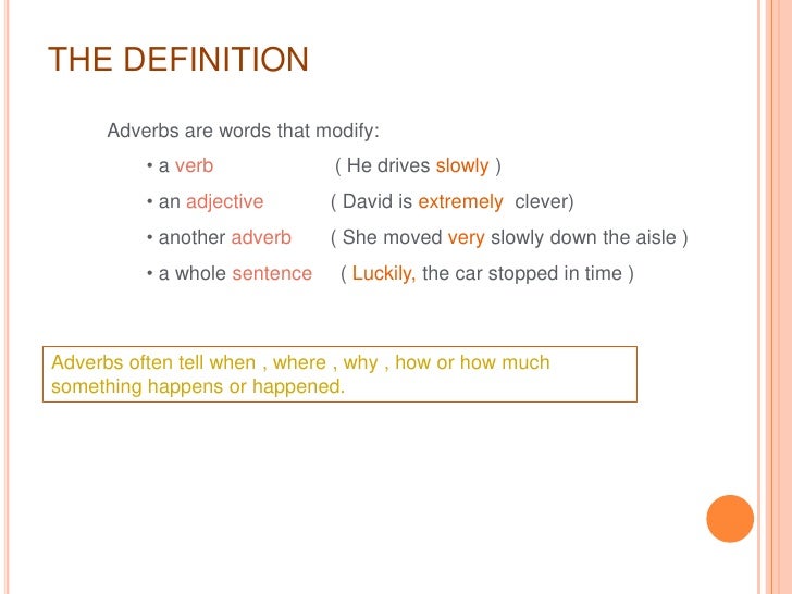Adverbs Tell When Where How And Why. When an adverb modifies a verb, it tells us how, when, where, why, how often, or how much the action is performed. It refers to a time expression.it means in/on which.