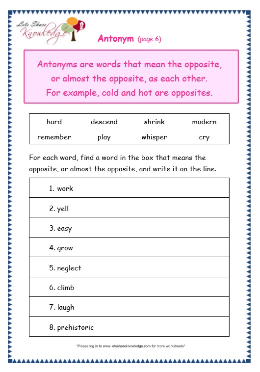 Antonyms Grade 3. Select one or more questions using the checkboxes above each question. Free 3rd grade level antonyms worksheets, activity sheets, and games.