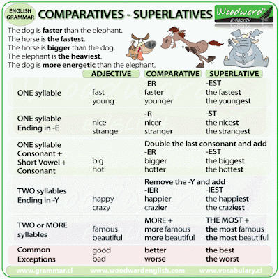 Hojas de referencia del tema: The formation of the comparative and superlative depends on the number of syllables in the adjective: This fun video makes it super fun to learn comparatives and superlatives in english. Superlative adjectives are used to describe an object which is at the upper or lower limit of a quality (the tallest, the smallest, the fastest, the highest).