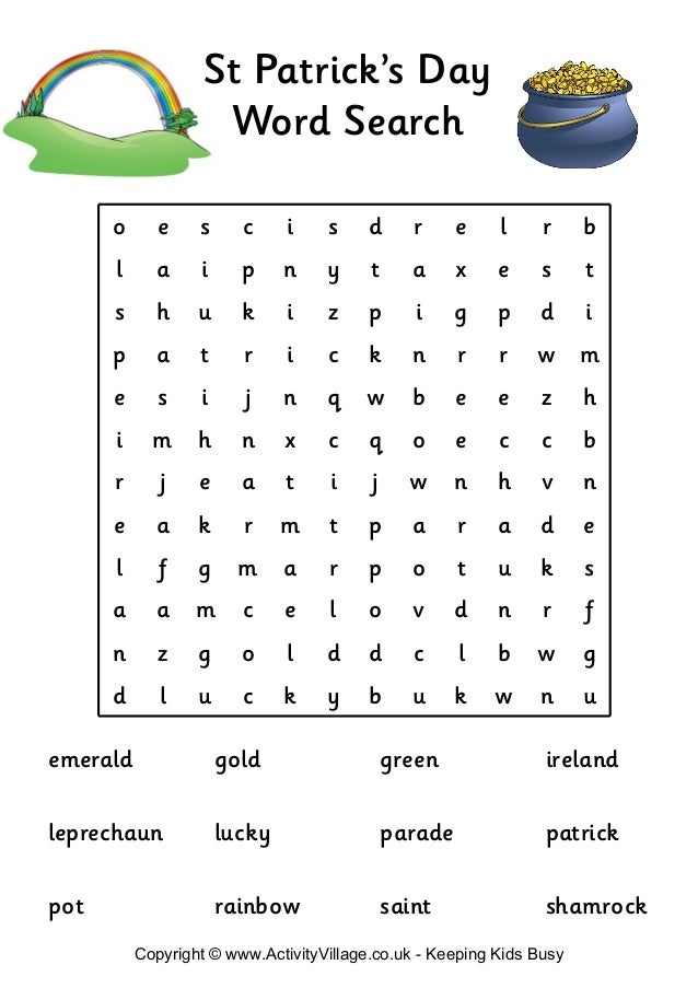 St Patricks Word Search. It is believed that he was born in england. Also recommended are the following free spring word searches, earth day word searches, easter word searches, and word searches for kids for this time of year.